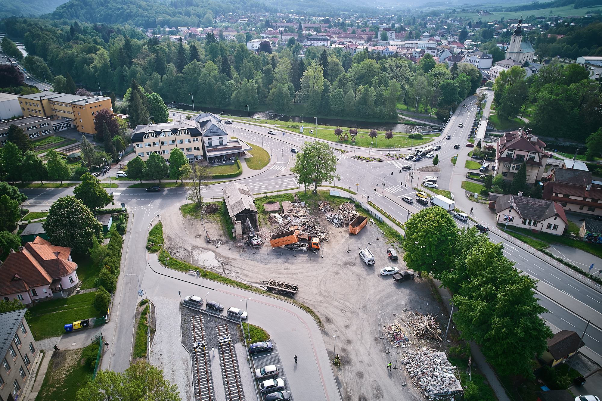 100 tatrovek suti a stavebního materiálu vyvezou nákladní auta po demolici čtyř budov, které minulý týden padly k zemi v blízkosti rožnovského vlakového nádraží. Odstranění čtyř starých a nevyužívaných objektů tak umožní v Rožnově pod Radhoštěm revitalizaci prostoru před vlakovým nádražím. Cílem je vybudovat moderní a příjemný prostor jak pro občany, tak i pro cestující, kteří budou tímto prostorem procházet. „Zbouráním čtyř nevyužívaných budov umožní městu vybudovat 35 nových parkovacích míst, menší parčík, vodní prvek, místa k posezení včetně mobiliáře nebo výsadbu stromů a keřů,“ informoval starosta Jan Kučera s tím, že díky revitalizaci tak přednádražní prostor v Rožnově získá druhý dech a je to další krok ke zlepšení kvality života ve městě. „Při plánování revitalizace přednádraží jsme také kladli důraz na modrozelenou infrastrukturu, tedy na hospodaření se srážkovými vodami. Osazením propustných povrchů v kombinaci s výsadbou zeleně tak dojde k lepšímu zadržování povrchových vod v podloží. Občané tak tuto změnu pocítí zejména v létě, kdy se zlepší mikroklima,“ zdůraznil starosta Kučera.